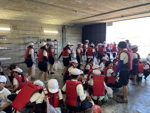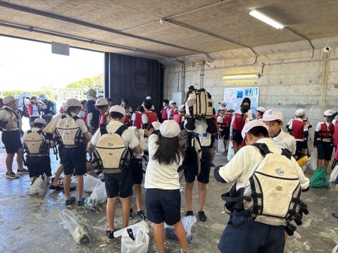 海の活動をする準備をしています。今からカッターといかだに別れて、海の活動をします。