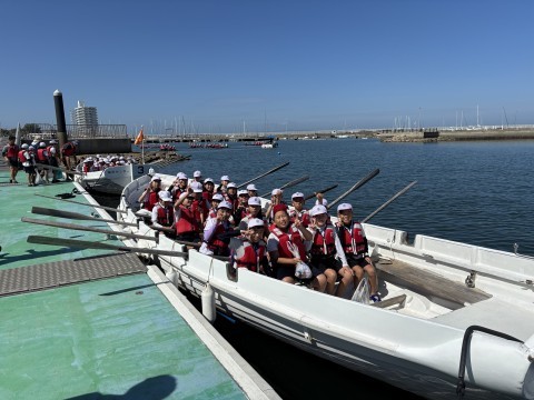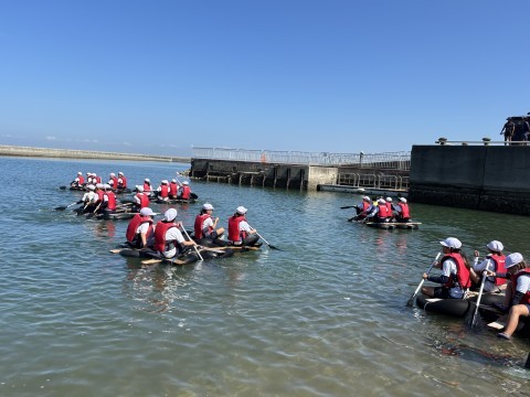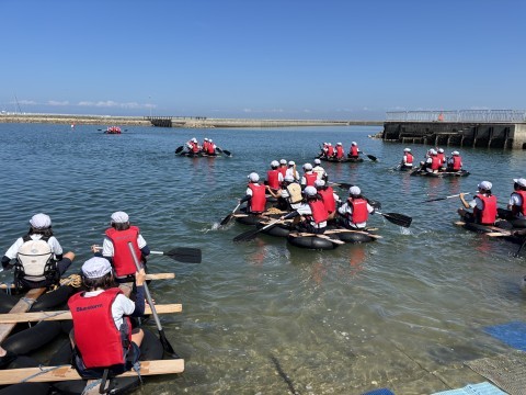 カッターといかだを乗り換えて、海の活動に取り組んでいます。