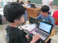 算数の学習で分数の計算をしています。素早く最小公倍数を見つけて計算しています。