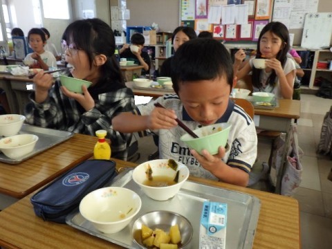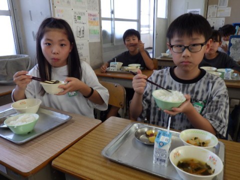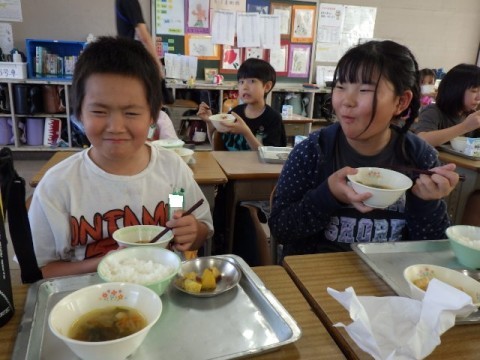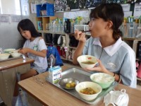 給食の時間が始まりました。今日もおいしくいただきましょう♪