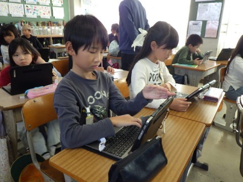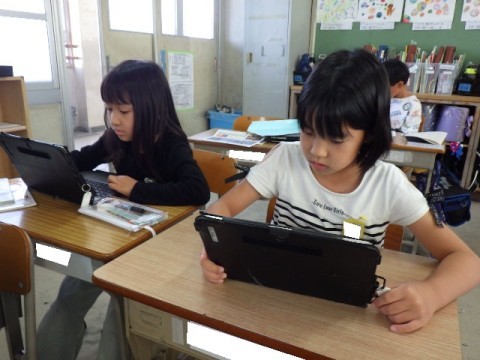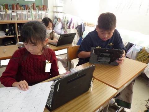 球について学習しています。どんな形といえるかな。タブレットを使って考えていました♪