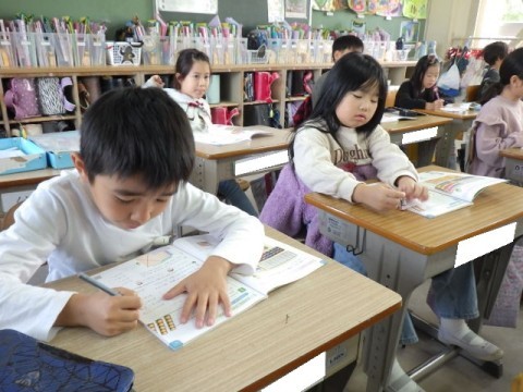 かけ算の学習,がんばっています。5のまとまりがいくつあるか,5の段のかけ算の意味をみんなで共有していました♪