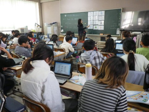 11月12日(水) 4年生外国語活動「ふでばこの中身は」♪