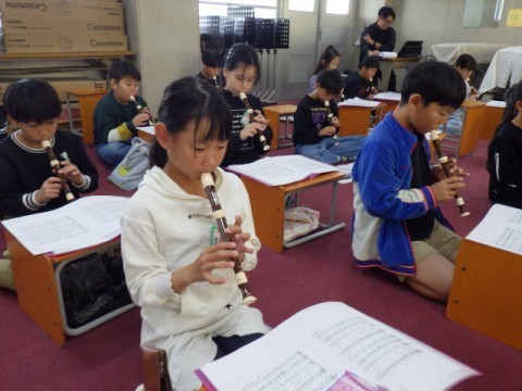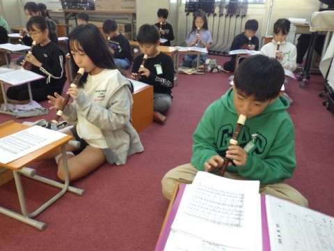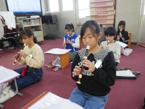 「茶色のこびん」のリコーダー合奏に取り組んでいました。今日練習を始めたばかりですが,もうしっかりきれいなメロディを奏でられています♪