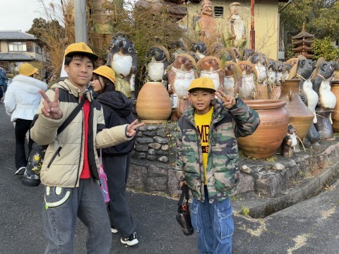 宗陶苑に到着しました。たくさんの狸が出迎えてくれました。