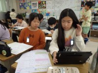 台形の面積の求め方について学習しています。タブレットを使って図形を切ったりはったりコピーしたりして考えていました♪