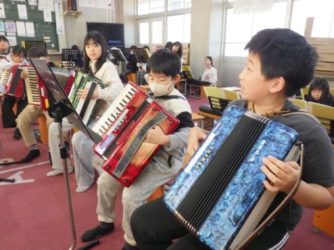 「威風堂々」を元気いっぱい練習しています。みんなで音を合わせると気持ちがいいですね♪