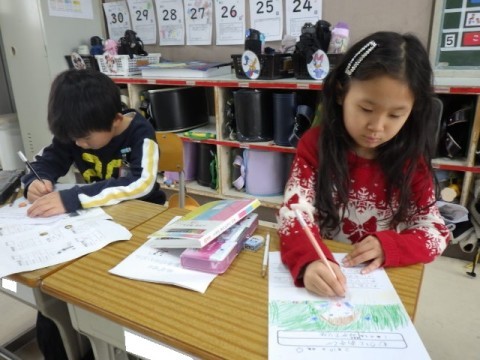 楽しかった昔遊びをふりかえっていました。絵と文で上手に表現しています♪