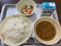 今日はパンにつけるチョコレートがありました。1年生は『これはどうやって食べるの』と興味津々でした。