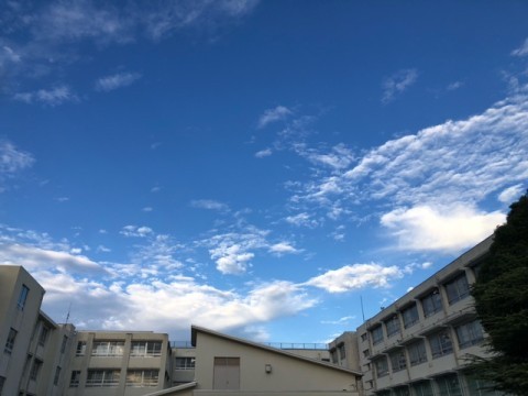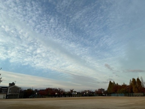 今日は秋らしい雲が空一面に広がっています。昨日は,お昼過ぎ,虹色に光る雲が見られました。「こんな雲見たことない」と子どもたちは大盛り上がりでした。私もはじめて見ました。