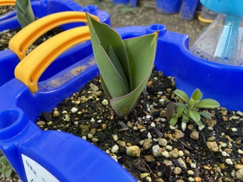 きれいな青い空が広がっています。ボランティアのみなさんが愛情を込めて育ててくださっている花々がどんどん咲いてきています。どんどん季節は進んでいます。