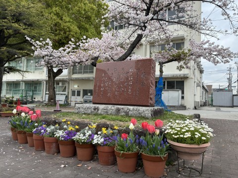 明日からいよいよ新しい年度が始まります。一年生の入学をもっていたかのように,校庭の花々が一斉に咲いています♪