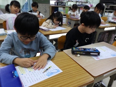 10月23日(木) 1年生書写「一画一画ていねいに」♪