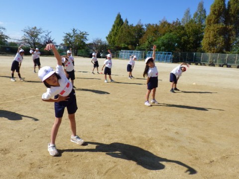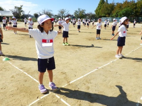 体育参観で披露する「かけっこ」の学習です。最後まで力を緩めず走り抜けましょう。力いっぱ走ろうね♪