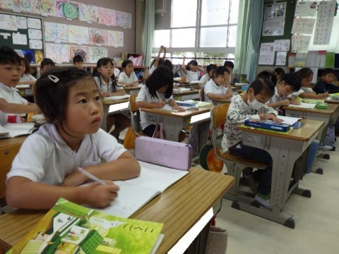 物語「くじらぐも」の学習です。みんなで音読を楽しんでいました♪