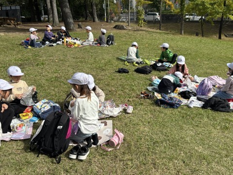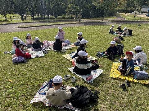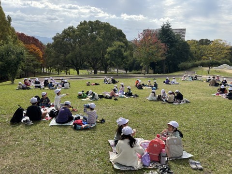 お弁当を食べた後、大蓮公園の遊具で遊んでいます。