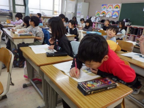 1年生から3年生は教室での実施です。いつもの自分をふりかえりながら交通安全にかかわるいろんなクイズに取り組んでいました。