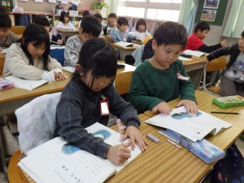 11月28日(金) 1年生国語「たぬきの糸車」♪