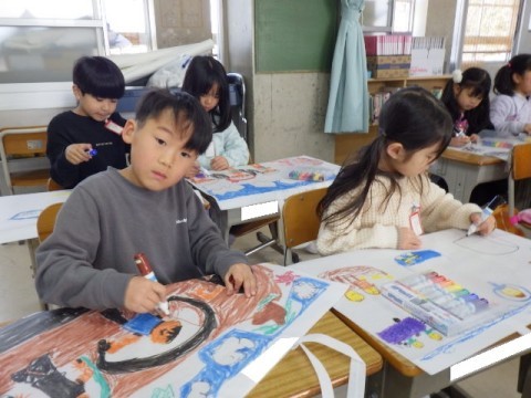 3月16日(月) 1年生図工「作品バッグ」♪