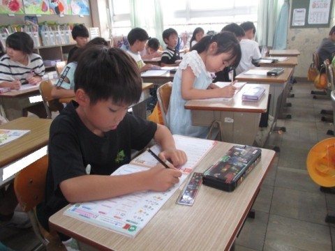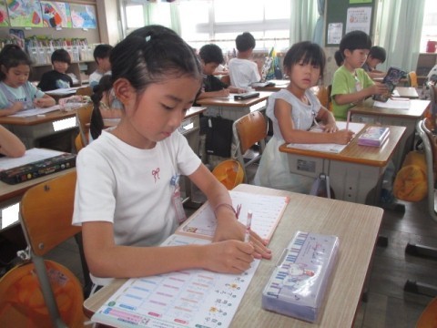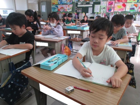 9月24日(水) 2年生書写「いい姿勢で」♪