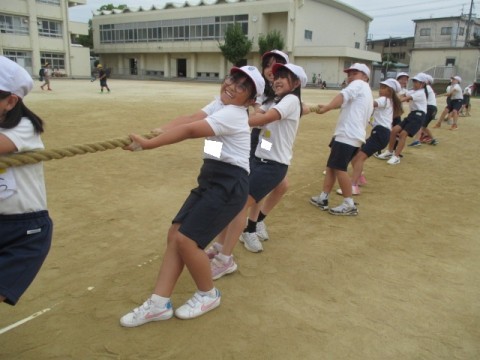 体育参観で行う綱引きの練習です。力いっぱいがんばる姿を応援してあげてください♪