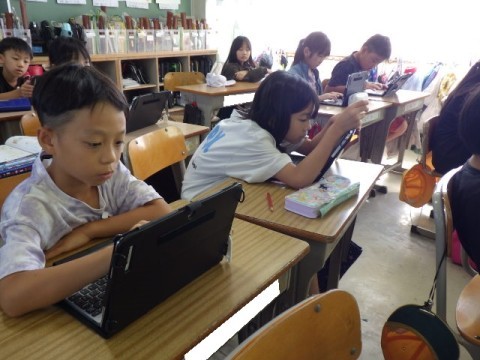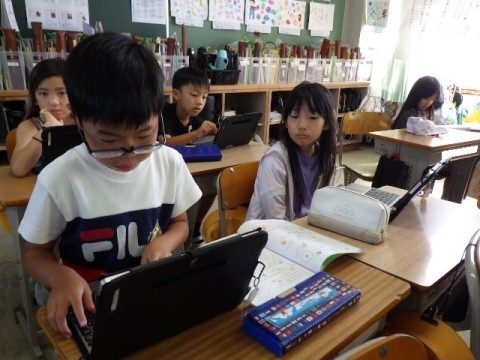 3年生では,三角形,四角形それぞれの特徴について学習します。タブレットを使って集中して取り組んでいます♪