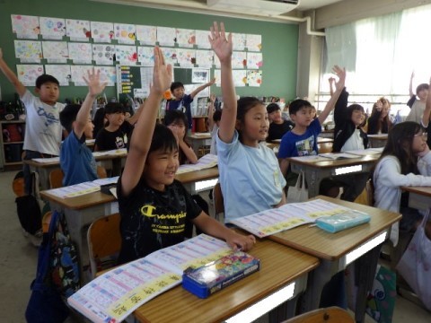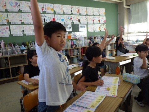 体育参観の練習,がんばりました。次は国語の時間!漢字の学習の前に先生からのクイズに全力で取り組んでいました♪