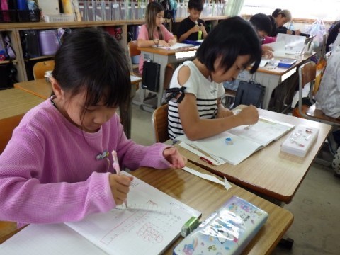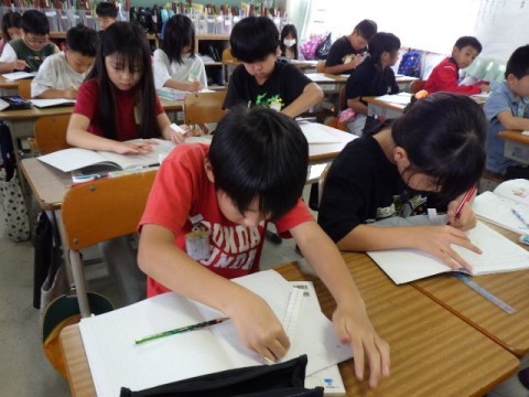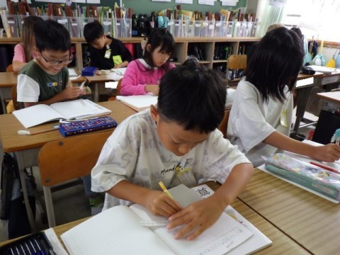 国語で「ちいちゃんのかげおくり」について学習しています。お話の内容と自分自身の生活を比べて違いについて考えています。