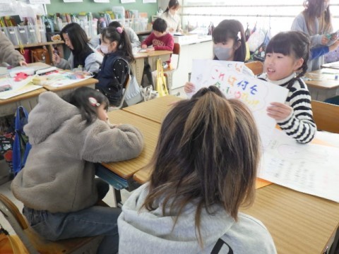 5時間目にある学習参観に向けての最終準備です。それぞれのグループで堺市のよさについて発表します♪