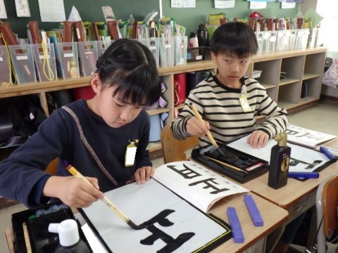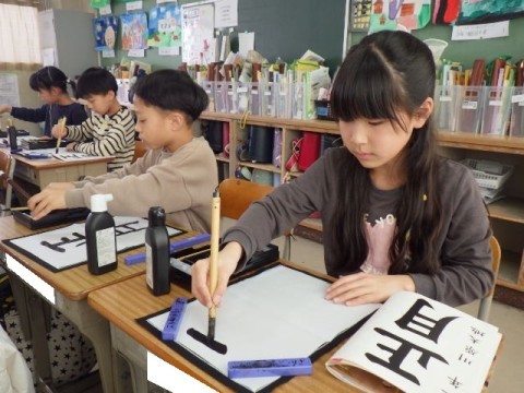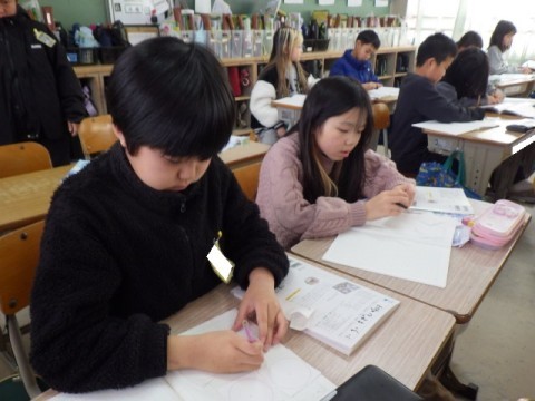 少し時期は違いますが,今日の課題は「正月」です。折れがポイントになります。みんながんばっています♪