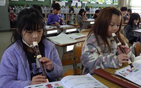 1年間で学習してきたいろんな曲をふりかえっていました。みんな,本当の上手になりました♪