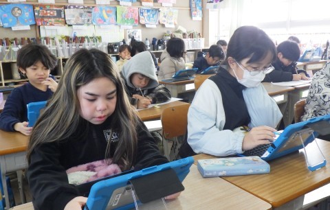 3年生の学習の総復習です。タブレットを使って理解を深めています♪