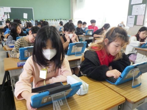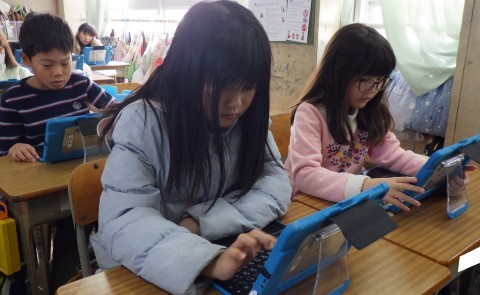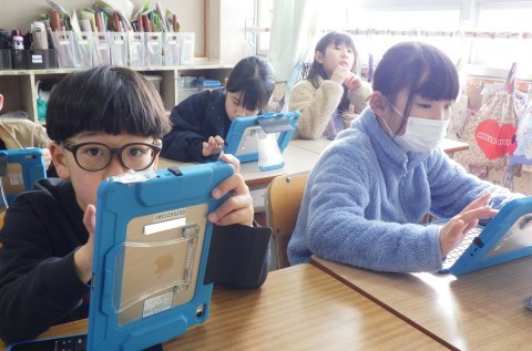 新しいタブレットの機能をみんなで試しています。意見交流にはばっちり使えそうですね♪