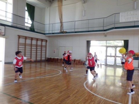 ラインポートボールの学習に取り組んでいます。どんどんシュートを打って得点をねらっていこうね♪