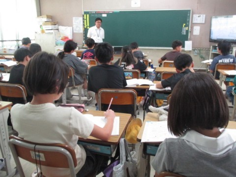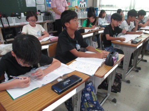 教育実習の先生が算数の授業をしてくれました。公約数の学習です。みんな,一生懸命先生の話を聞き,学習に取り組んでいました♪