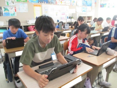 物語「たずねびと」の学習です。初めて読んだ感想をタブレットでまとめ,共有しています♪
