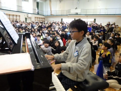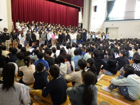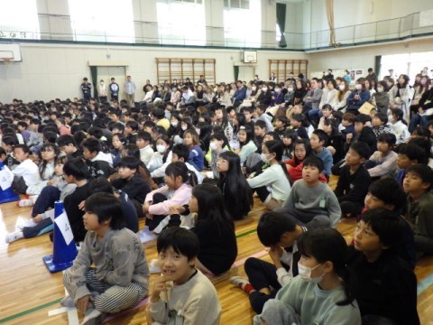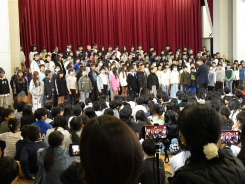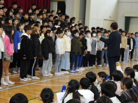 5年生は連合音楽会に向け連日,合唱の練習に力いっぱい取り組んでいます。今日はその成果を1,2,3年生児童のみなさんに披露しました♪