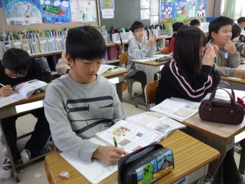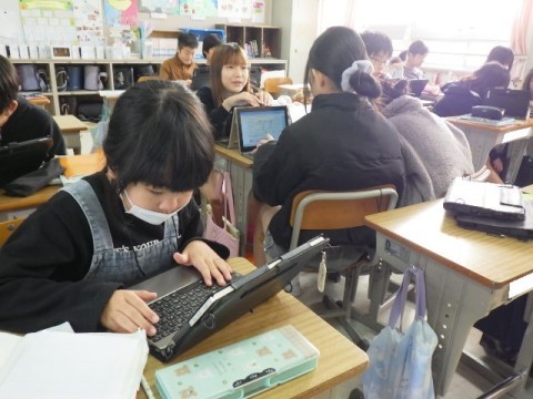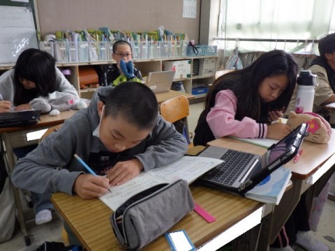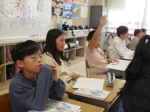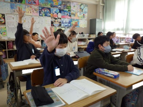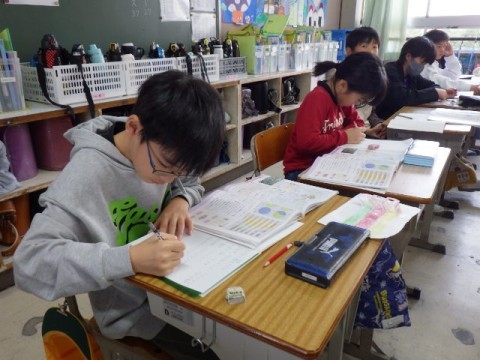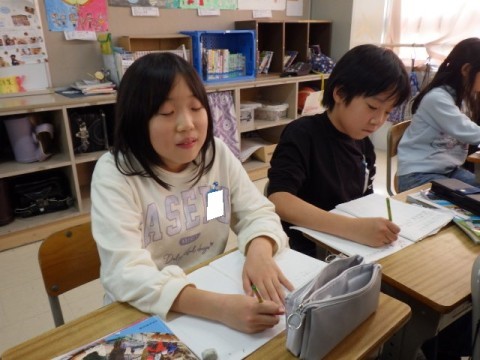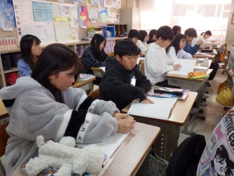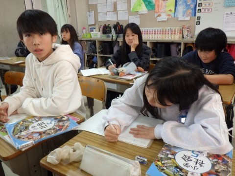 新しい教材の学習が始まりました。まずは本文を読み,新しい漢字の読み方の確認をしていました♪