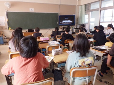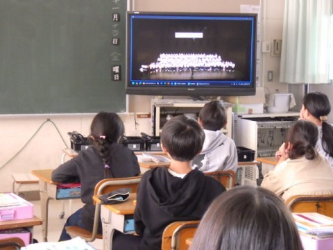 先週の連合音楽会での合唱,とってもすてきでした。今日はビデオ映像で自分たちの姿を鑑賞しました。みんな,とてもいい表情で見入っていました♪