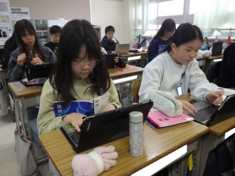 説明文教材「想像力のスイッチを入れて」の学習です。同じ出来事であっても見方が違えばとらえ方も変わります。教科書に書かれた事例をタブレットにまとめていました♪