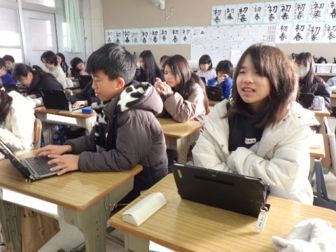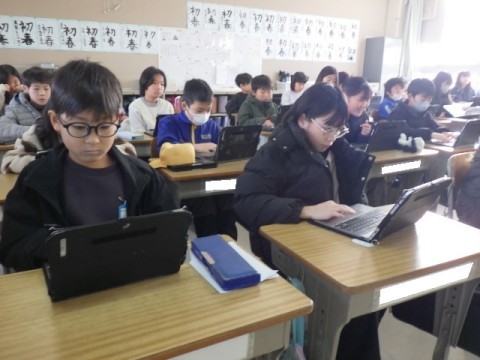 タブレットでアンケートに答えています。早く終わった子はタイピングの練習をしているようです。