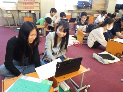 リコーダーのカノン,自分で奏で自分で聴きます。タブレットに録音した音をみんなで楽しんでいました♪