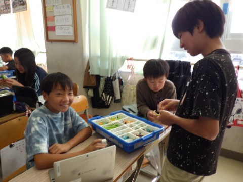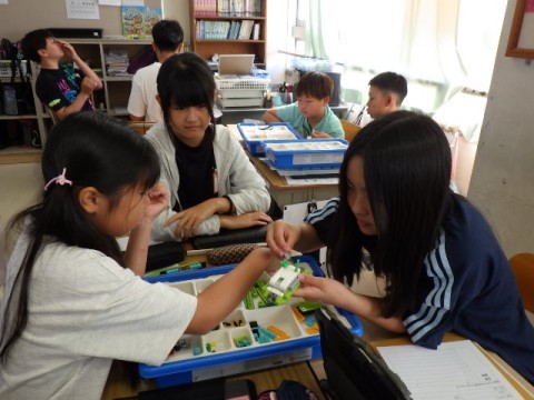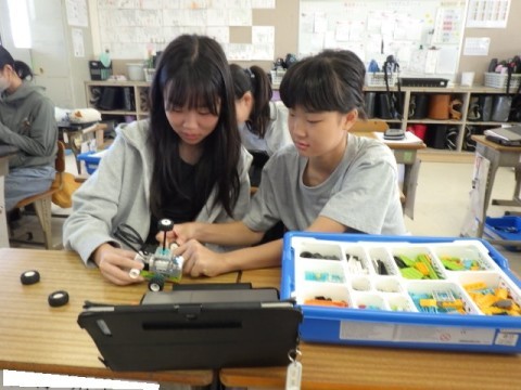 「LEGO WE GO」を使って,プログラミングの学習をしています。ロボットを組み立てて,これからプログラミングをしていきます。