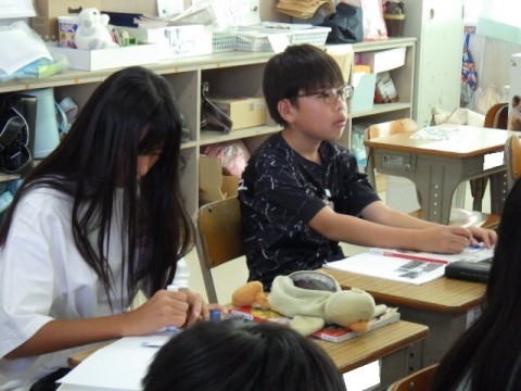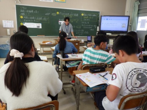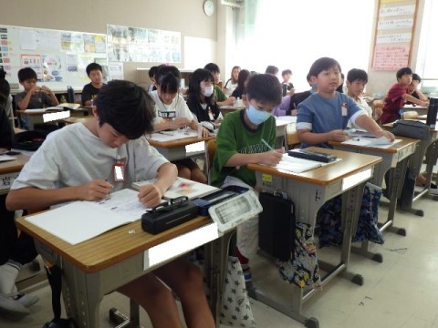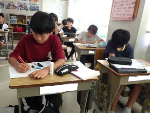 円柱,角柱の体積の求め方をみんなで考えていました。集中して取り組んでいます♪