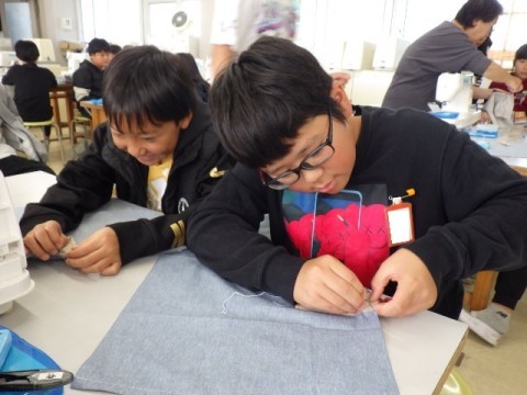 裁縫の学習のまとめです。エプロン、ナップザックに続き、ティッシュケースを作成しています。みんな,どんどん上手になっています♪