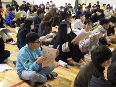 「鳥獣戯画を読む」の学習です。本文を読み,現存する鳥獣戯画が国宝である理由について読み取っていました♪