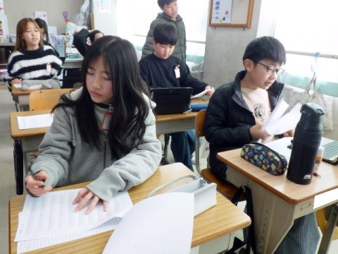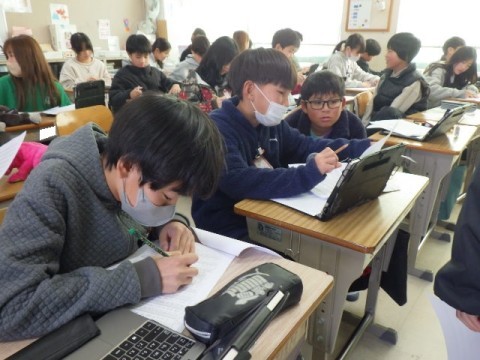外国語の学習で中学校での部活や将来したいことを英語で聞いています。