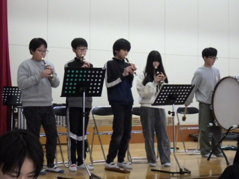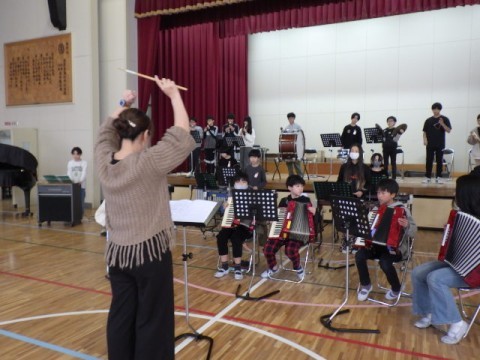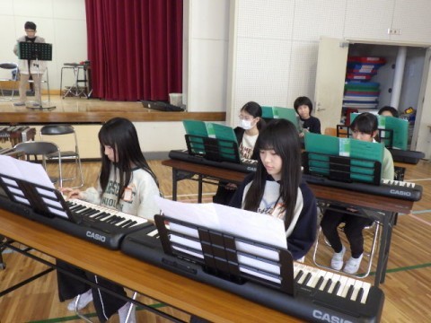 卒業コンサートに向けた練習に熱心に取り組んでいます。音楽室とは違う独特のむずかしさがあるね♪