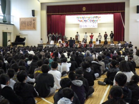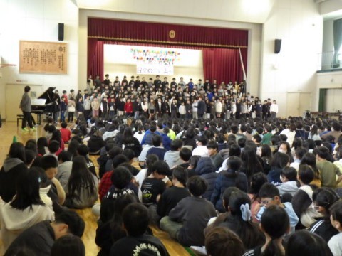 まずは全体合唱「かわらないもの」です。みんなの声が重なり合い,弱く強くいいハーモニーをつくりあげていました♪