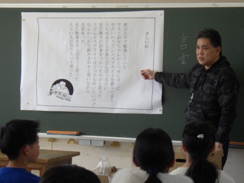 先生から受ける国語の授業はこれで最後となります。言葉の力についての先生の心のこもったお話でした。みんな,いい表情で聞き入っていました♪